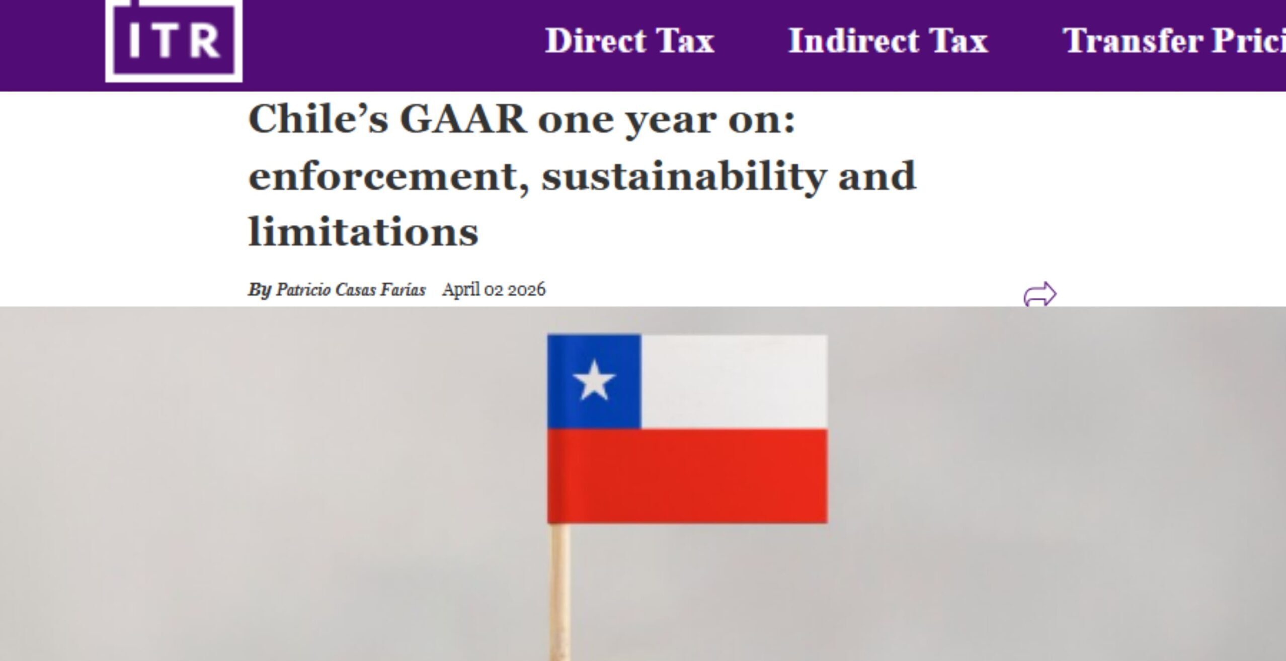 We share our Tax Litigation Director, Patricio Casas’s article published by ITR (International Tax Review) regarding Chile’s new GAAR reform: …